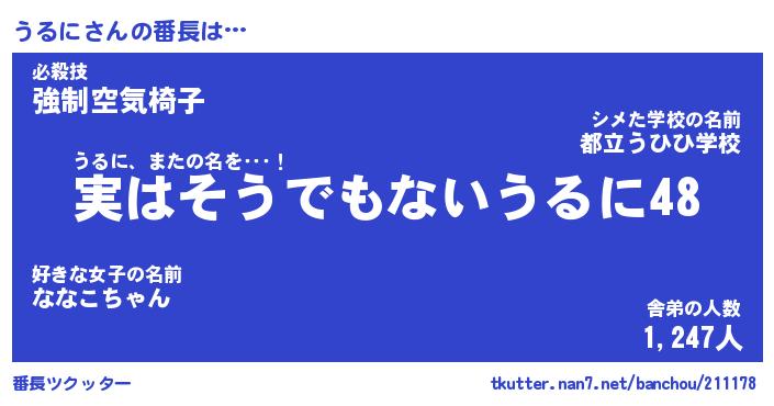 | 肩書あだ名 | 『うるに御曹司』『うるに国家主席』 |