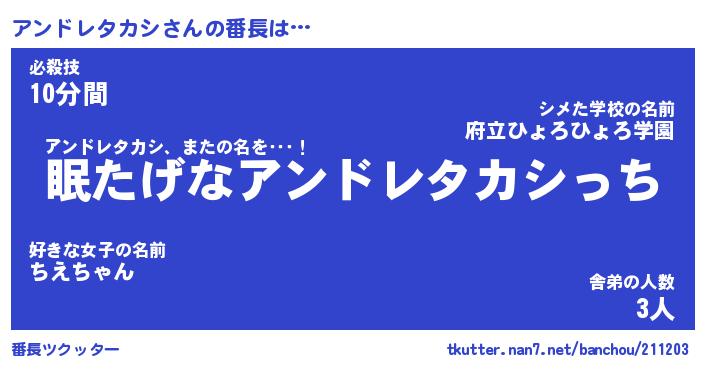 | ヒーロー風カッコイイあだ名 | 『スーパーアンドレタカシ』 |