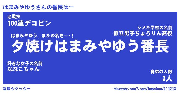 | ポケモン風あだ名 | 『ハマチュウ』『ハマミダネ』 |