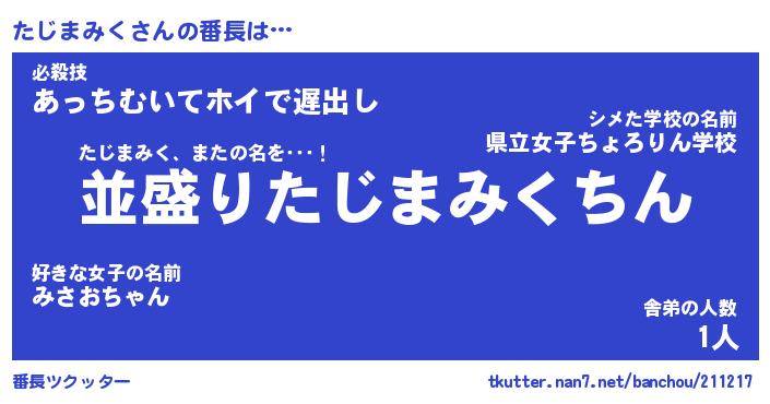 | 肩書あだ名 | 『たじまみく店長』『たじまみく大統領』 |