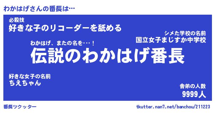 | 意味不明あだ名 | 『ペロリンわかはげ』『永久保存わかはげ』 |