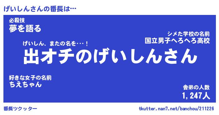 | 肩書あだ名 | 『げいしんCEO』『げいしん総理大臣』 |