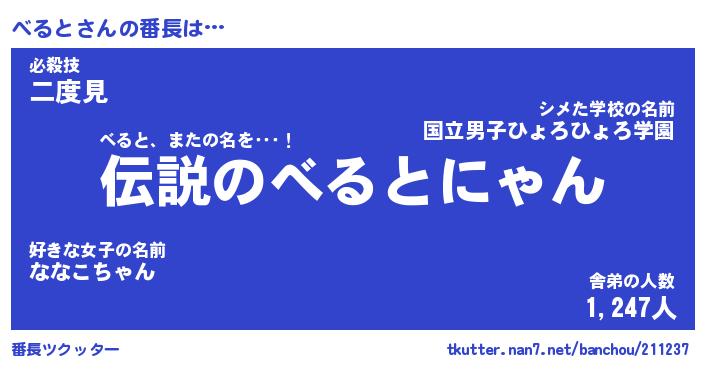 | 意味不明あだ名 | 『ペロリンべると』『べるとフォーエバー』 |