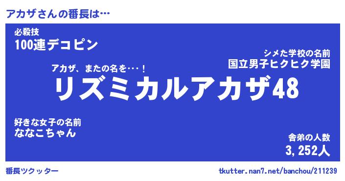 | 肩書あだ名 | 『アカザ社長』『アカザ総理大臣』 |