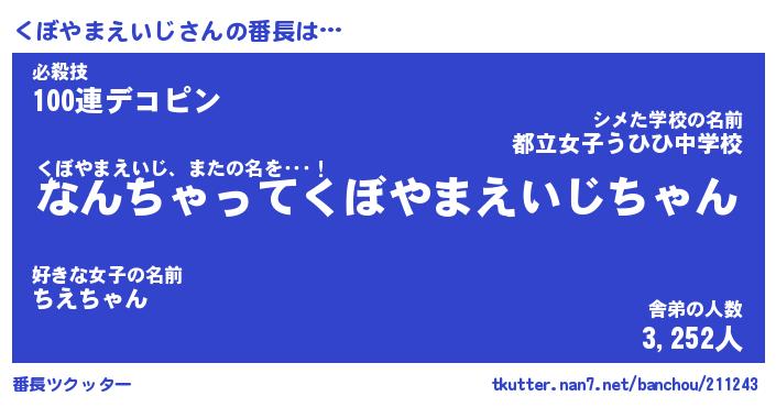 | 伝説のあだ名 | 『伝説のスナイパーくぼやまえいじ』 |