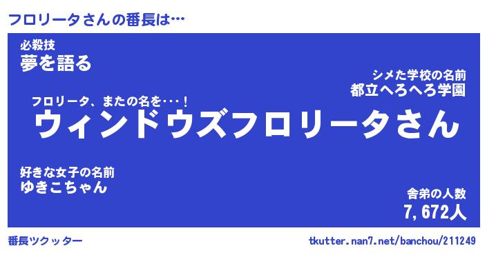 | ファンタジー風あだ名 | 『フロフェル』『エターナルフロリーター』 |