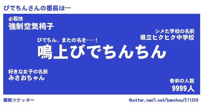 | ヘコむあだ名 | 『びでもー』『つくし』『びで太郎』 |