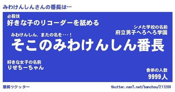 | 肩書あだ名 | 『みわけんしんCEO』『みわけんしん班長』 |