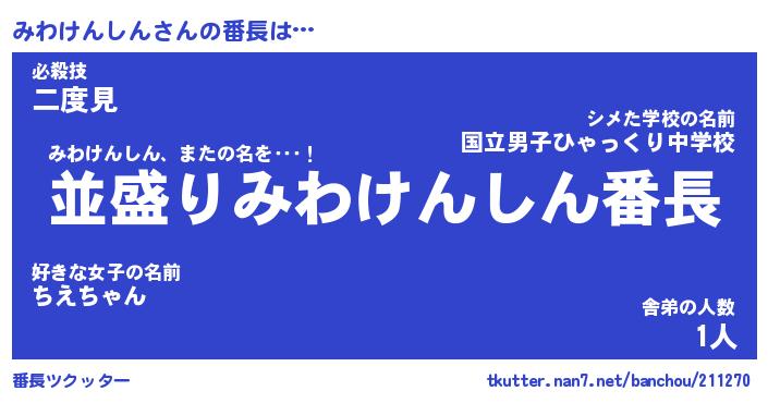 | 肩書あだ名 | 『みわけんしん店長』『みわけんしん教頭』 |