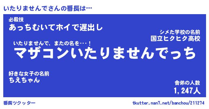| ヘコむあだ名 | 『いたもー』『つくし』『いた太郎』 |