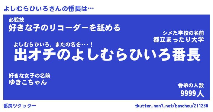 | ポケモン風あだ名 | 『ヨシチュウ』『ヨシムダネ』 |