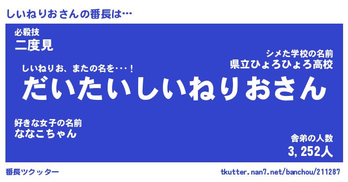 | ヘコむあだ名 | 『しいにー』『レバニラ』『しいお』 |