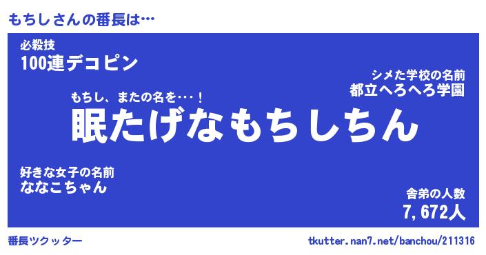 | 肩書あだ名 | 『もちし店長』『もちし総理大臣』 |