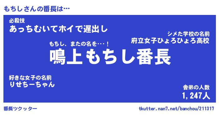 | ヒーロー風カッコイイあだ名 | 『スーパーモチシ』『ウルトラもちしマン』 |