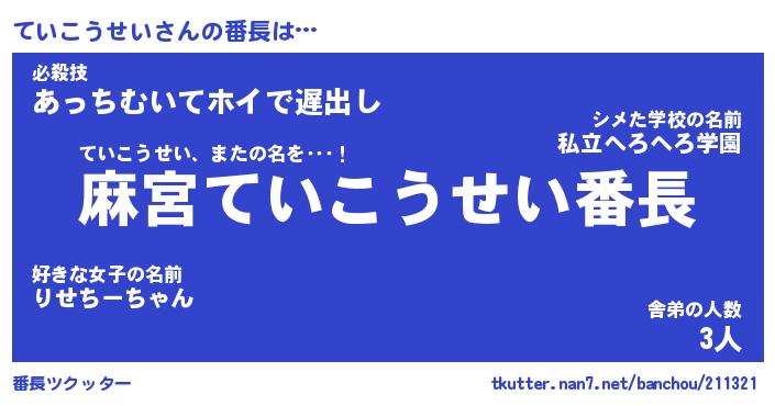 | ヘコむあだ名 | 『ていにゅー』『酢こんぶ』 |