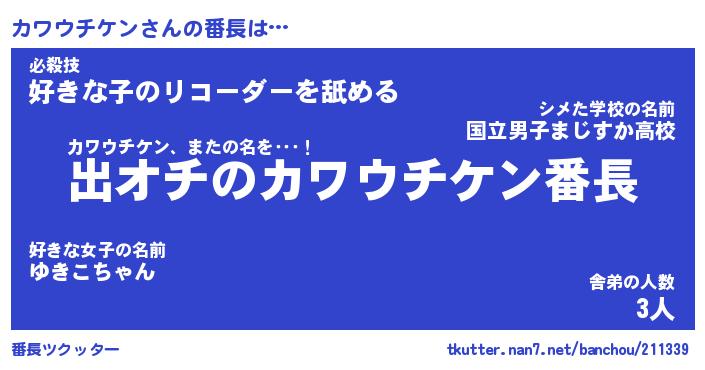 | 肩書あだ名 | 『カワウチケン御曹司』 |