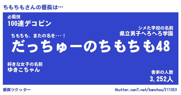 | 意味不明あだ名 | 『ペロリンちもちも』『永久保存ちもちも』 |