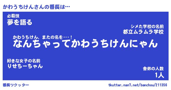 | 意味不明あだ名 | 『ペロリンかわうちけん』 |