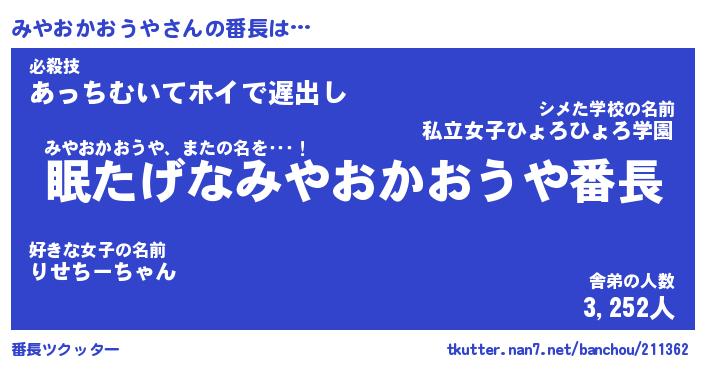 | ヒーロー風カッコイイあだ名 | 『スーパーミヤオカオウヤ』 |