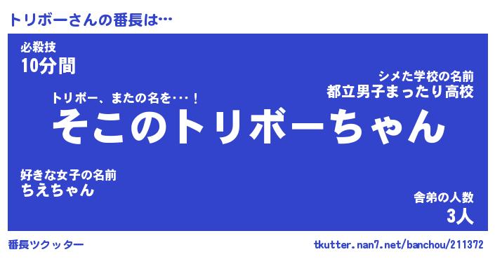 | 意味不明あだ名 | 『ペロリントリボー』『永久保存トリボー』 |