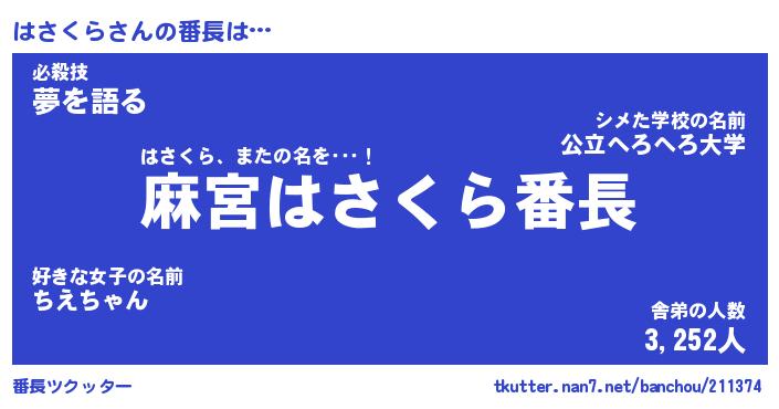 | 意味不明あだ名 | 『ペロリンはさくら』『永久保存はさくら』 |