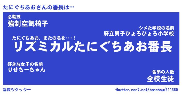 | 肩書あだ名 | 『たにぐちあお御曹司』 |