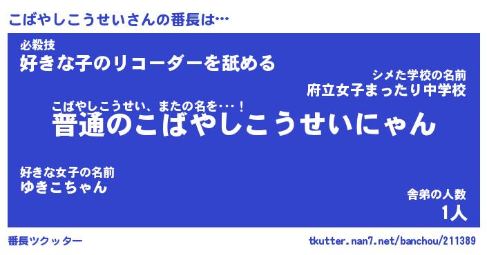 | 2回繰り返すあだ名 | 『こばこば』『ここばば』『ぬめぬめ』 |