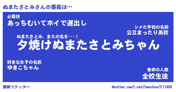 | 伝説のあだ名 | 『封印されしスナイパーぬまたさとみ』 |