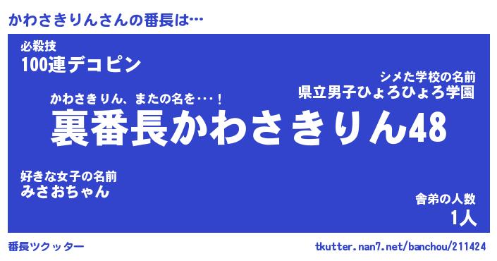| 男性向けラノベタイトル風あだ名 | 『カワサキリンアートオンライン』 |