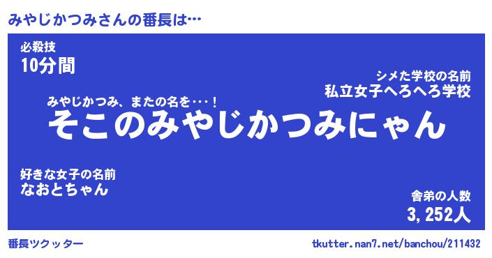 | ヘコむあだ名 | 『みやにゅー』『豆乳』『みや太郎』 |