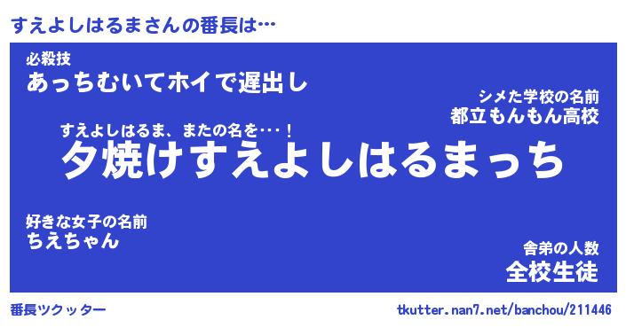 | 伝説のあだ名 | 『封印されしスナイパーすえよしはるま』 |