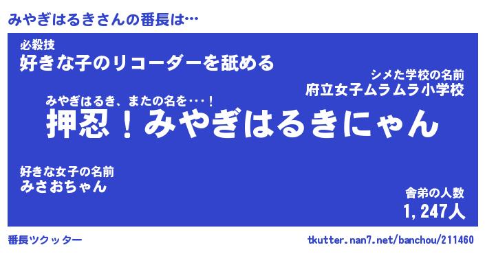 | 肩書あだ名 | 『みやぎはるき御曹司』 |