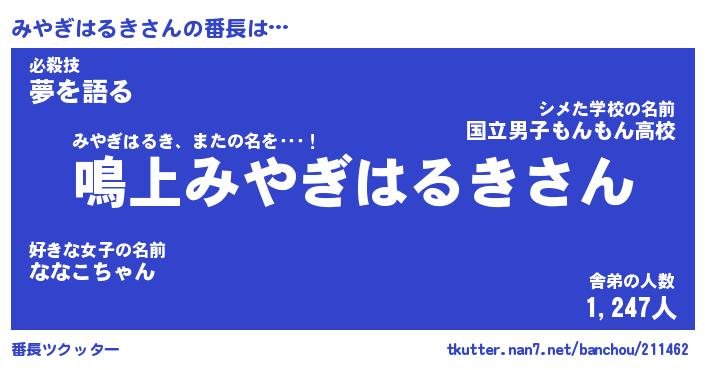 | 伝説のあだ名 | 『封印されしスナイパーみやぎはるき』 |