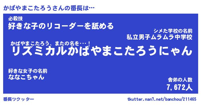 | 意味不明あだ名 | 『ペロリンかばやまこたろう』 |