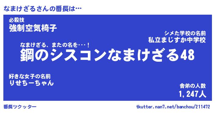 | ヘコむあだ名 | 『なまっふぃ~』『豆乳』『なまっ子』 |