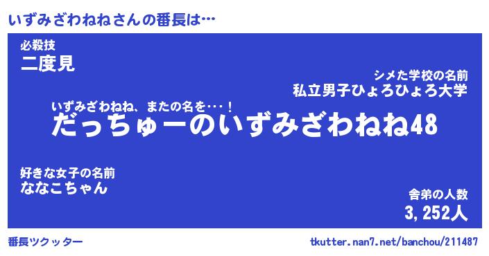 | ピコ太郎風あだ名 | 『イコ四郎』『ピイ二郎』『イズ史郎』 |
