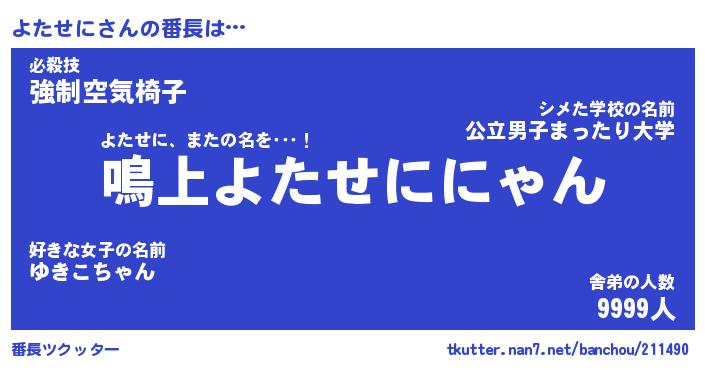 | 肩書あだ名 | 『よたせに御曹司』『よたせに総理大臣』 |