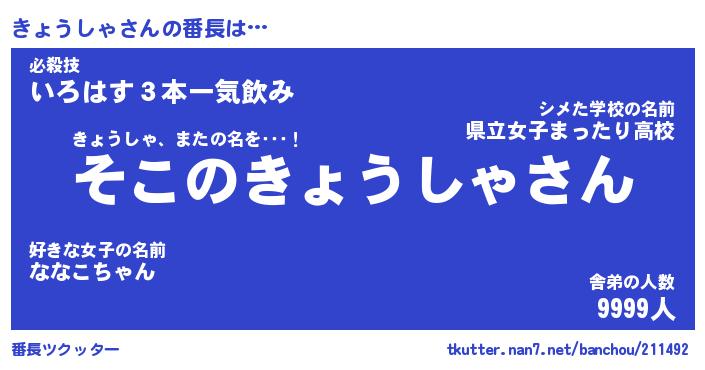 | ファンタジー風あだ名 | 『キョフェル』『エターナルキョウシャー』 |