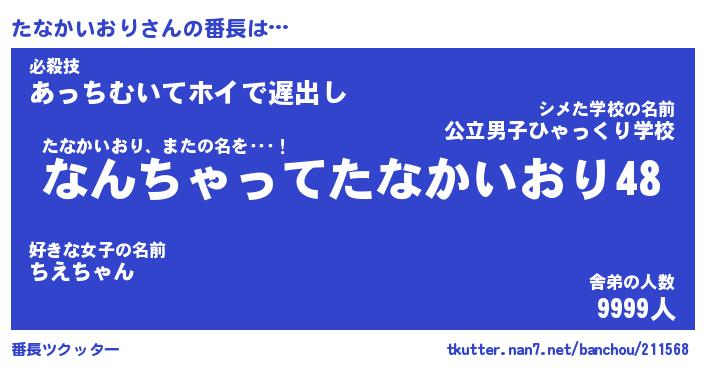 | 肩書あだ名 | 『たなかいおり社長』『たなかいおり教頭』 |