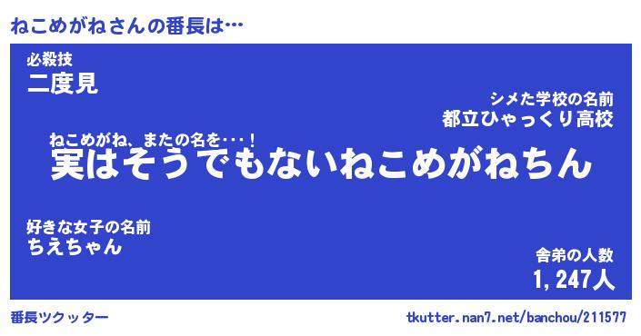 | 2回繰り返すあだ名 | 『ねこねこ』『ねねここ』『ぎしぎし』 |