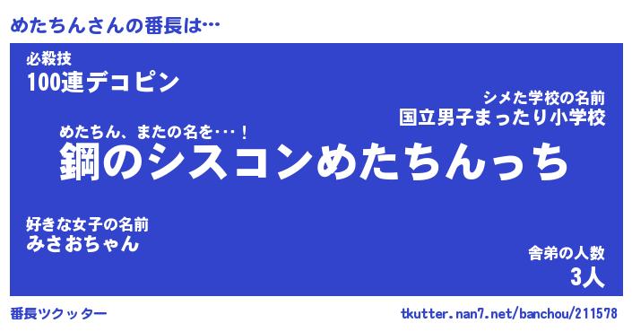 | 意味不明あだ名 | 『ペロリンめたちん』『永久保存めたちん』 |