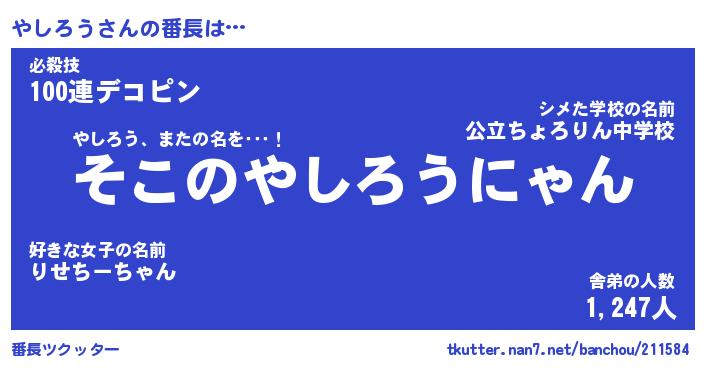| ピコ太郎風あだ名 | 『ヤコ五郎』『ピヤ太郎』『ヤシ三郎』 |