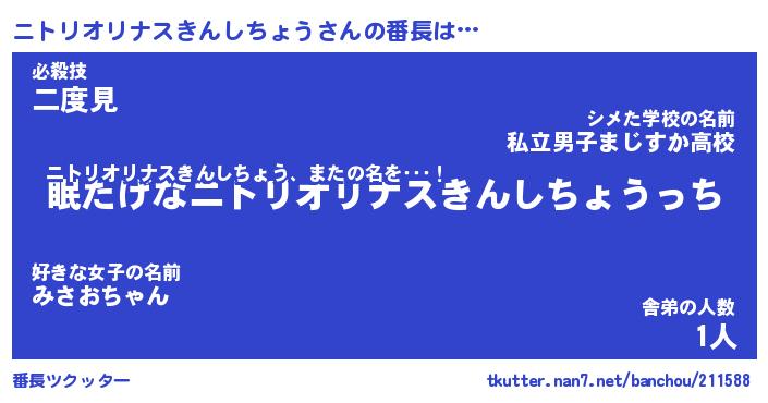 | 肩書あだ名 | 『ニトリオリナスきんしちょうCEO』 |