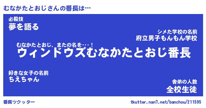 | 伝説のあだ名 | 『伝説の竜騎士むなかたとおじ』 |