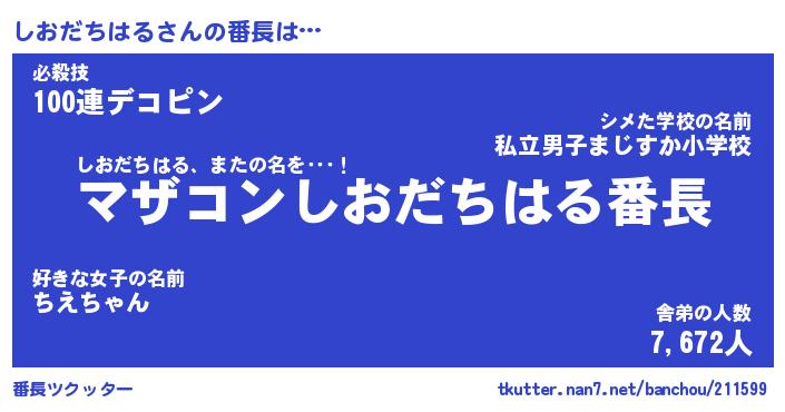 | 伝説のあだ名 | 『封印されしスナイパーしおだちはる』 |