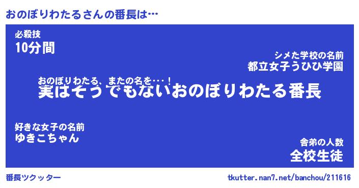 | 伝説のあだ名 | 『封印されしスナイパーおのぼりわたる』 |