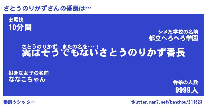 | 伝説のあだ名 | 『封印されしスナイパーさとうのりかず』 |