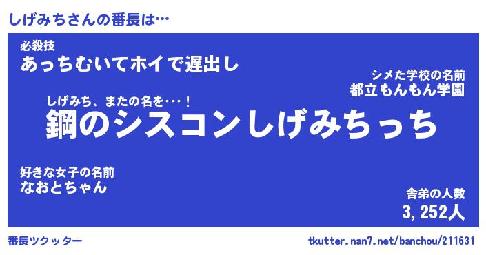 | ピコ太郎風あだ名 | 『シコ四郎』『ピシ五郎』『シゲ一郎』 |