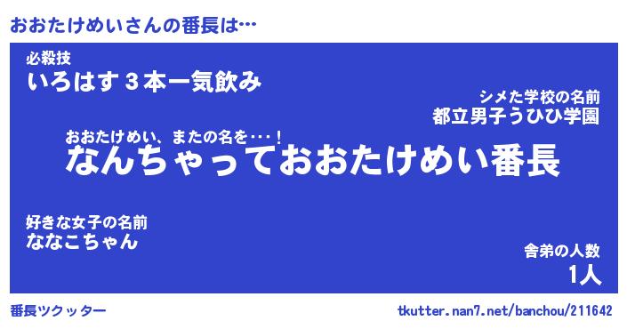 | 意味不明あだ名 | 『ペロリンおおたけめい』 |