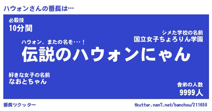 | ファンタジー風あだ名 | 『ハウフェル』『エターナルハウォンー』 |
